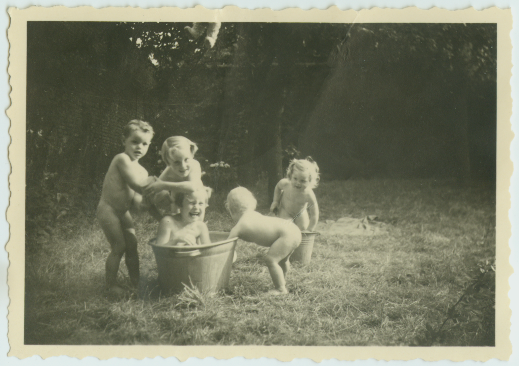 Raes playing around with 4 nude girls in 1955 (Latem) |