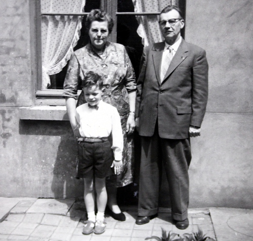 with grandparents, Helena Strunz and Herman (Germain) Merchiers, 1957 |