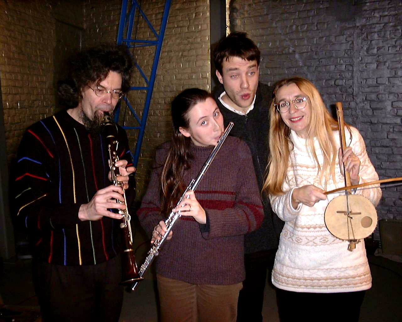 logos kwartet, 2000, met Godfried-Willem Raes, Karin Defleyt, Joachim Brackx en Moniek Darge