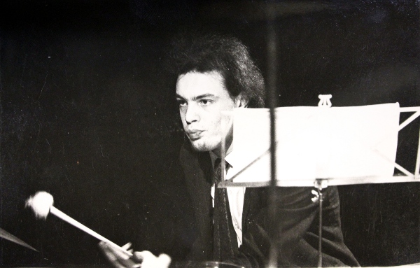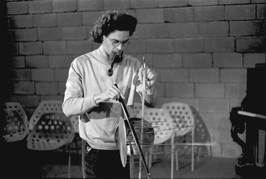 Godfried-Willem Raes playing his long nail violin, 1976.