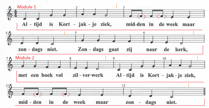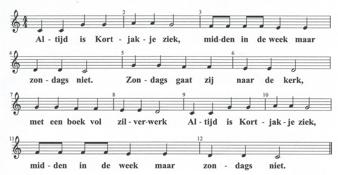 een overbekende melodie, met name het kinderliedje 'Altijd is Kortjakje