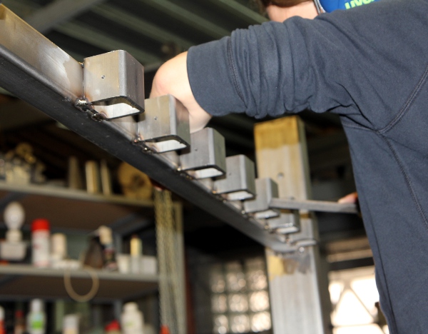 Draagstoelen maken voor de montage en het aanlassen van de demperhouders.