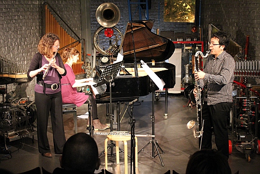 Duo works with violin, clarinet, music boxes and extended vocal techniques.