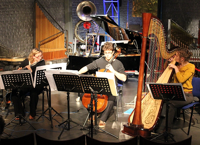 The young Ghent trio Mangalam! (Anne Davids: flute, Yann Lecollaire: saxophone, Charlotte Otte: piano) are fascinated by new sound colours in contemporary repertoire for flute, piano and bass clarinet. They promise a fresh, cheerful alternative to a grey winter evening.
