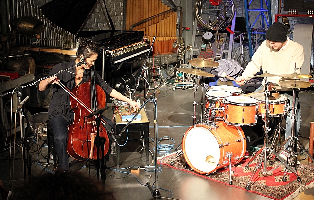 Voice artist and cellist Audrey Chen takes on drummer Luca Marini. A musical adventure into the darker regions of the vocal cords, strings and drumskins.