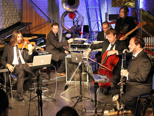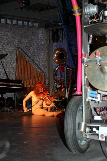 Automaton orchestra with dancers, performers and musicians: Dominica Eyckmans, Moniek Darge, Sebastian Bradt, Xavier Verhelst, Helen White and Kristof Lauwers, directed by Godfried-Willem Raes. This concert was sold out.more information on the M&M Orchestra