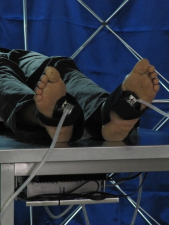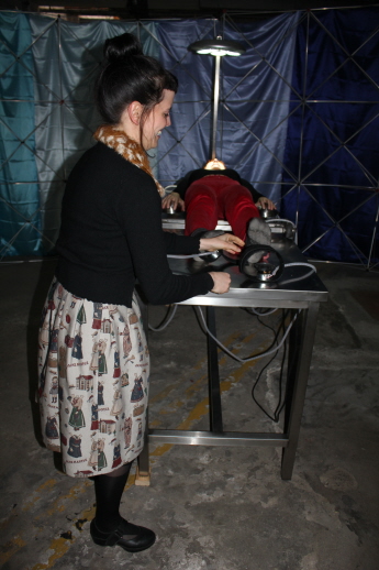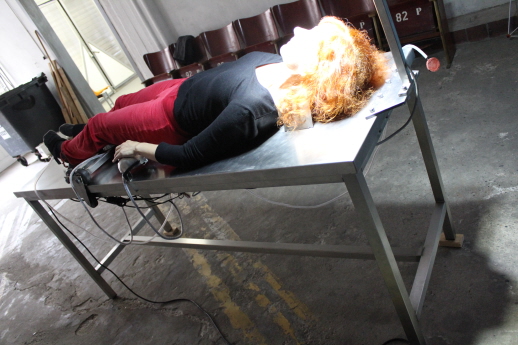 Oorwonde is an interactive aural installation in which the visitor becomes a willing 'patient' to hear, feel, influence and manipulate the soundtrack of a fictitious operation. Speakers, electro-magnets, vibrator motors and piezoelectric disks entwine with the human body, creating a unique composition and performance. Based on Bernhard Leitner's philosophy that "listening is understood to extend to all parts of the body and sound to touch a deep nerve",Oorwonde explores the concept of bodily hearing as multiple elements target different body parts. Hearing is no longer restricted to the ears.