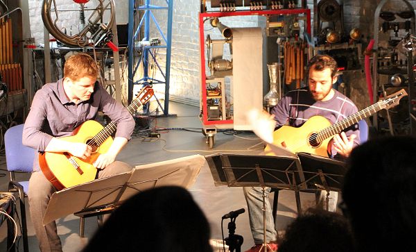 Automaton orchestra with dancers, performers and musicians: Dominica Eyckmans, Emilie De Vlam, Tashi Iwaoka, Moniek Darge, Sebastian Bradt, Xavier Verhelst and Kristof Lauwers, directed by Godfried-Willem Raes. Een alternatief en experimenteel nieuwjaarskoncert met heel wat dans-performance.