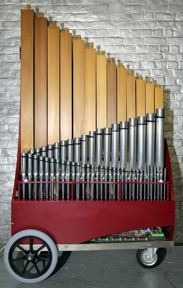geautomatiseerde dwarsfluit gebouwd en ontworpen door Godfried-Willem Raes.