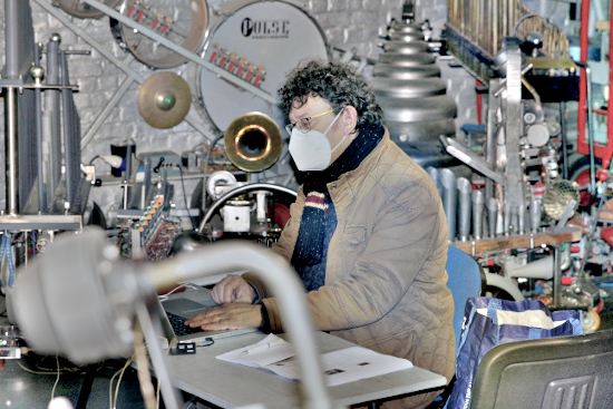 Deze livestream evenwel, kon worden gerealiseerd dankzij een kulturele aktiviteiten premie van de Vlaamse Gemeenschap, en in het kader daarvan verleenden we kompositieopdrachten aan Karel Stulens en Benjamien Lycke. De kreatie van deze nieuwe komposities kunt U hier meebeleven. Het nieuwe stuk van Karel Stulens heet 'Cageless' en is geschreven voor een hele reeks orgel-automaten van het robotorkest. Het stuk van Benjamien Lycke 'Cibesaes' maakt gebruik van een grote en diverse selektie robots uit het orkest. Met medewerking van Karel Stulens, Benjamien Lycke, Godfried-Willem Raes, Peter Van Lancker, Bert Vandekerckhove, Mattias Parent en Kristof Lauwers.