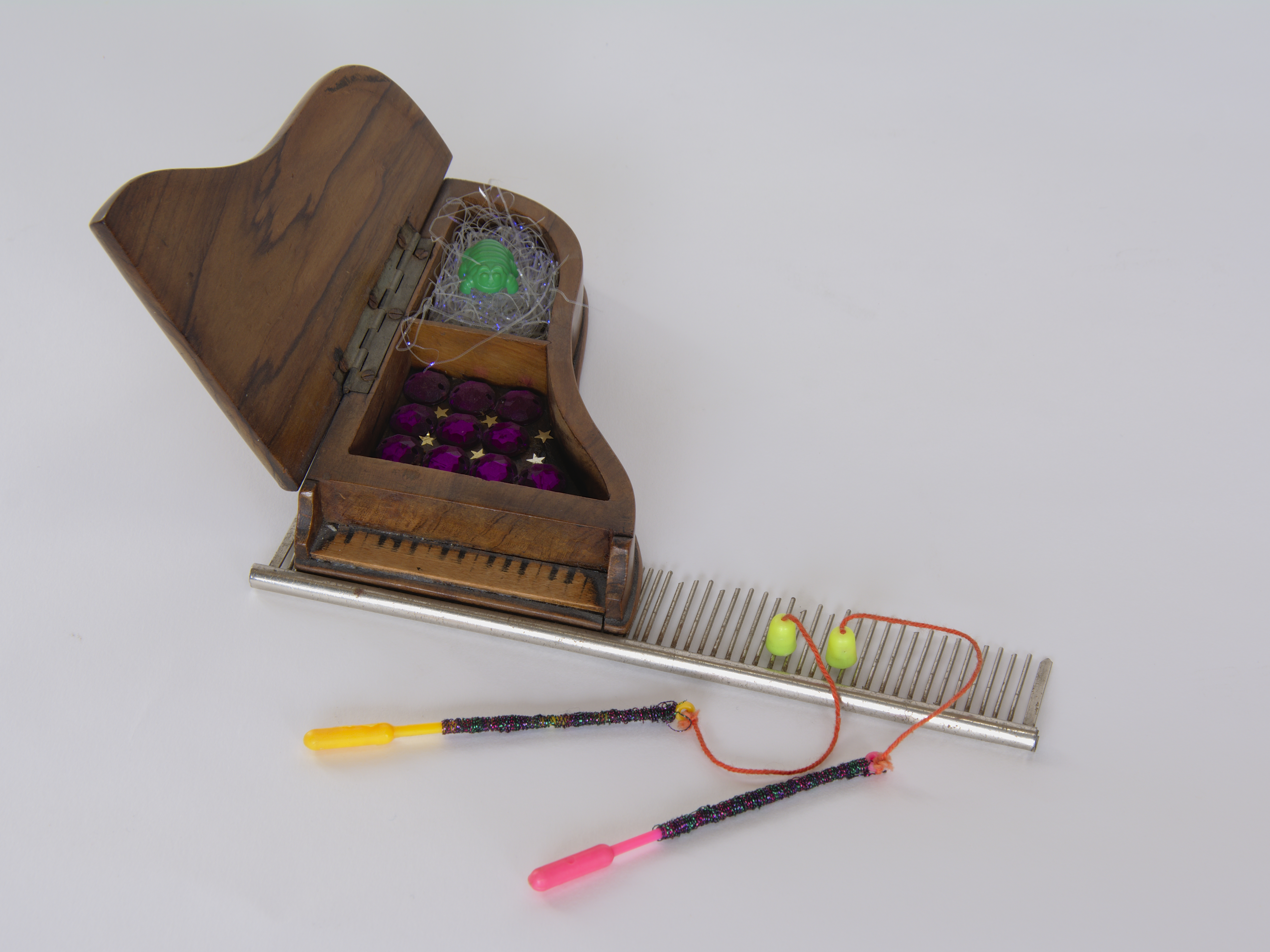 De muziekdozen van Moniek Darge vertellen een poetisch audio-visueel verhaal, gebouwd met stille klanken, subtiele lichtreflekties en een vleugje bevrijdende kitsch als ironische noot. Ze stelt haar knotsgekke exemplaren in geuren en kleuren aan u voor.