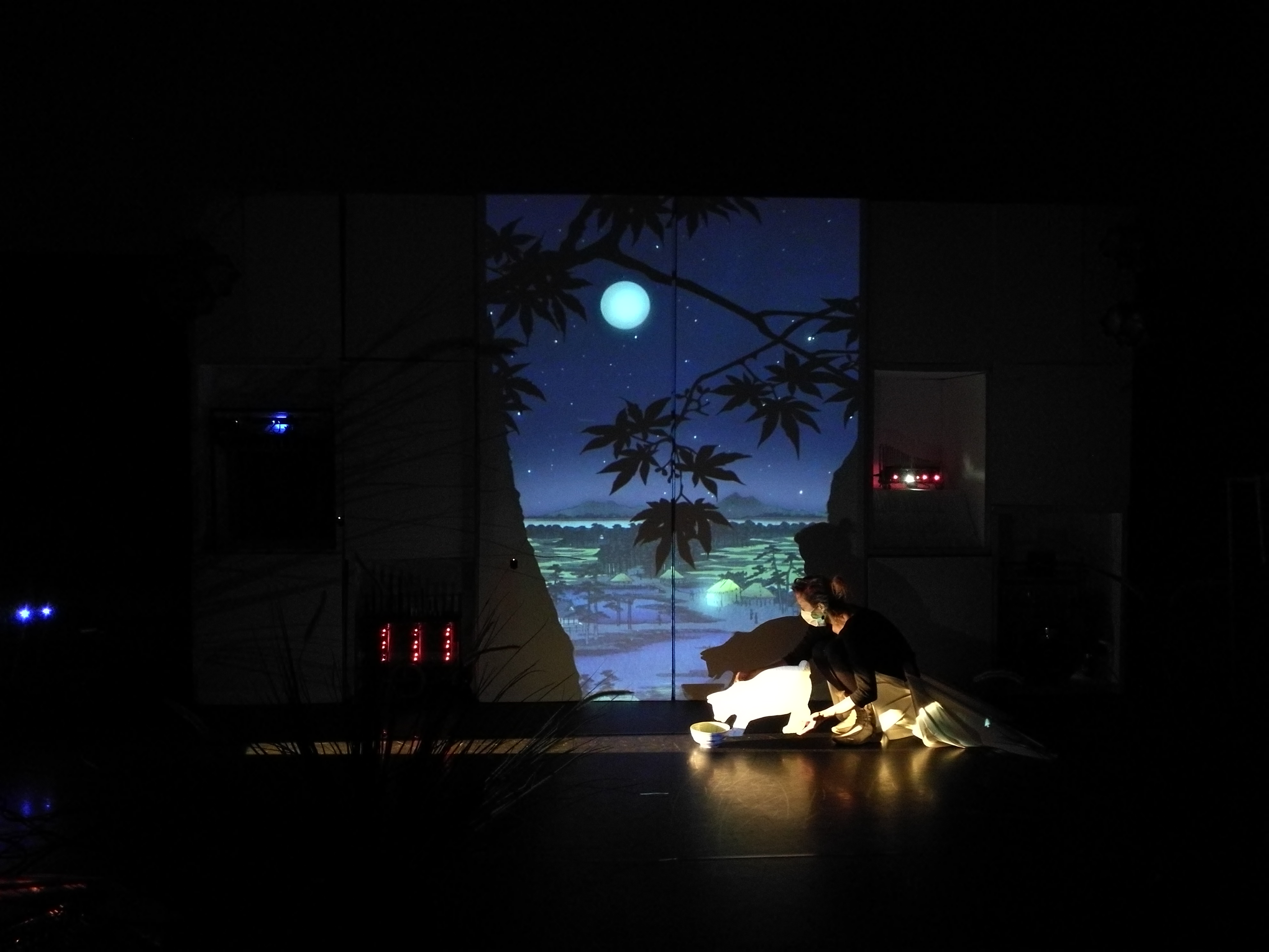 Een herfstlandschap uit 100 beroemde gezichten van Edo van de Japanse kunstenaar Hiroshige vormt het vertrekpunt van de familievoorstelling U ki yo E.