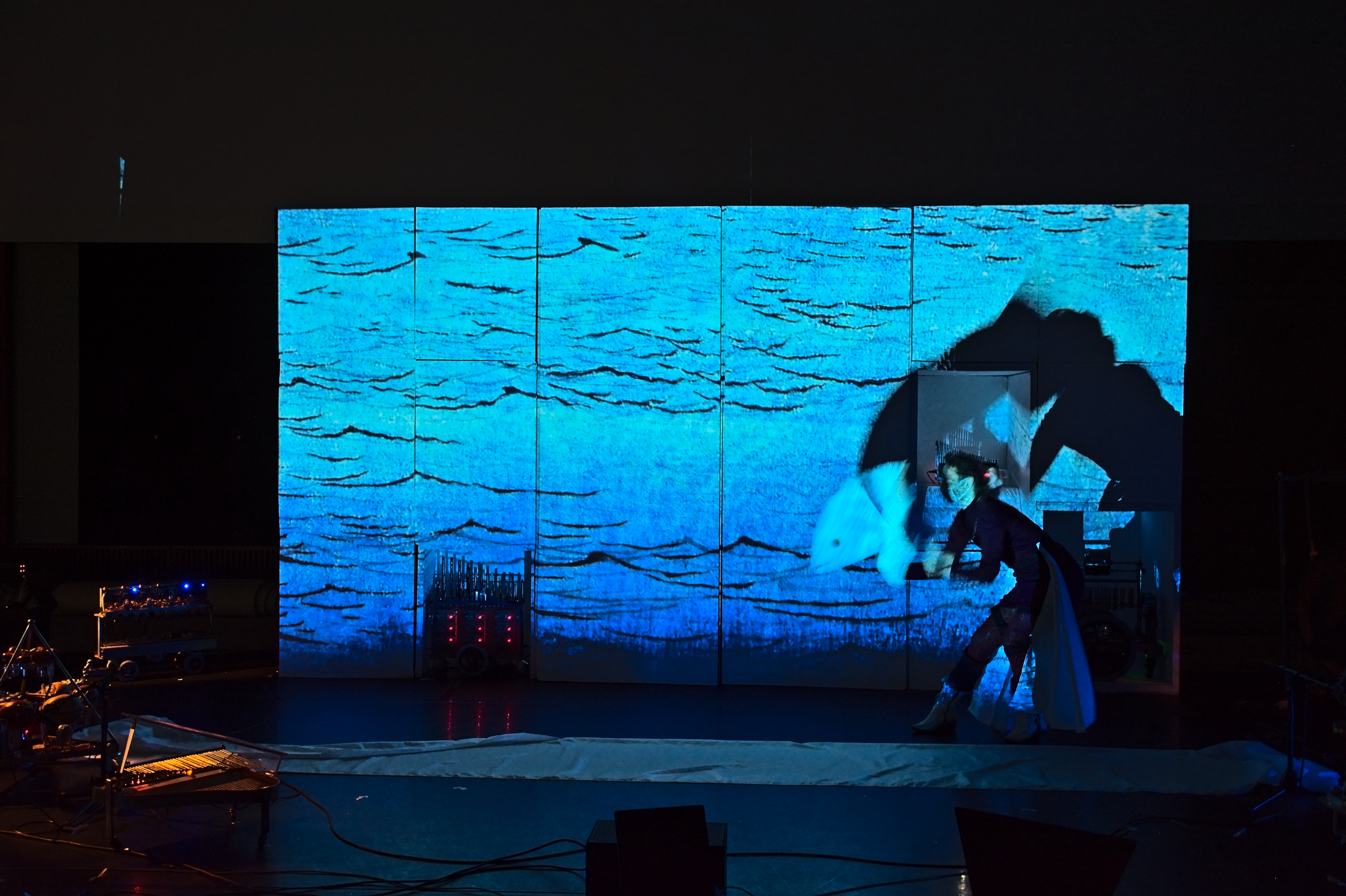 De verschillende lagen van de houtsnede worden vertaald in diverse audiovisuele werelden. Het witte podiumlandschap wordt dankzij videoanimaties, kirigami, akoestische robots, instrumenten, vocale acrobatieën en performers omgevormd tot een wereld vol kleur en verbeelding.