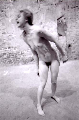 Since the mid-nineteen-seventies, we ourselves have carried out a large amount of research into the possibility of using the expressive characteristics of human movement aimed at producing music – i.e. without the use of music instruments in the physical sense – to effectively produce music. This research has led to a whole series of ‘invisible’ instruments. They are based either on sonar or radar technology and work completely without wires. They are non-impact instruments because they do not include any other physical object besides one’s own body, which must be used to make music. We have provided detailed descriptions of how they work in other articles.15 At this point we only wish to explain in somewhat greater depth the need for nakedness that such an approach turns out to require.