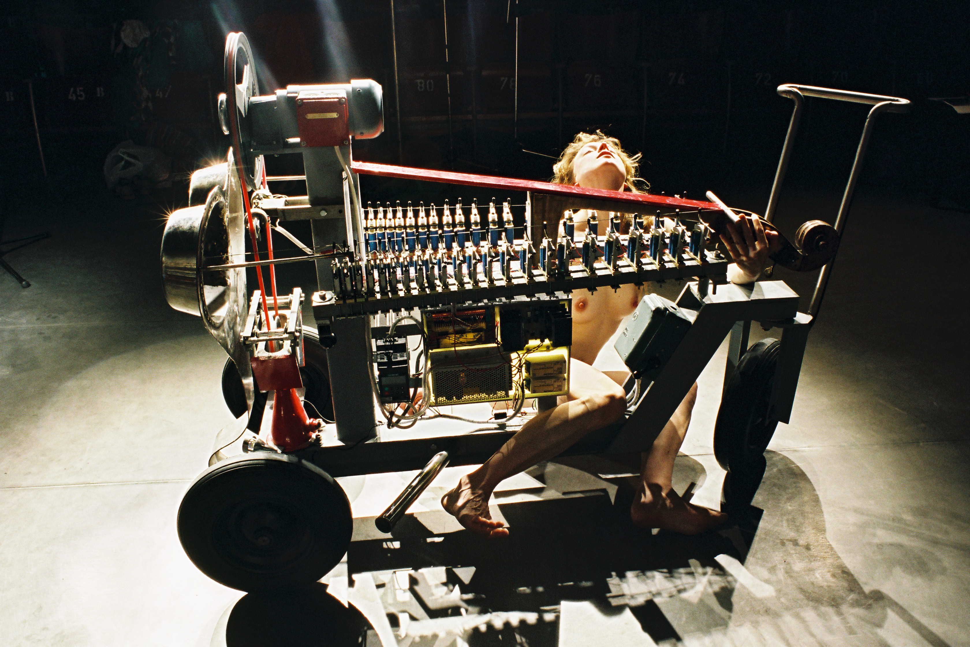 In theatres, the introduction of nudity was initially met with hard-line repression, in Belgium mainly initiated by socialist ministers supported by a heavily Catholic-inspired legal apparatus: we still clearly remember the trial of Hugo Claus’ ‘Masscheroen’ production, which presented the holy trinity as three naked men. Yet the tide could no longer be turned, and by the beginning of the 1970s there was no longer any difficulty with presenting nakedness on stage. The obviousness of nakedness in dance is no longer opposed against all odds: the body’s motor system is after all the subject of all dance as an art form. All clothed dance is concealment and, in fact, striptease in disguise. Clothed dance, including ballet, actually belongs in the opera, cabaret and bordello, different faces of the same coin. ‘Artistic’ stage nudity today does not always have an equally emancipatory intent, however. On the contrary, it can also serve to bring old values sharply to the fore and put them in the spotlight. Nakedness in the work of Jan Fabre, for example, does seem to be rooted in baroque patterns of thought. The emphasis on the transformation of the body through pain has much in common with baroque exultation. We believe that the same indication applies to the work of Abramovic where it is paired with self-mutilation. This is blatantly clear with Hermann Nitsch as well. But let us not forget that in these performances and theatre plays, the image – the nude – carries a clear semantic and symbolic meaning. The body is used as a reference.