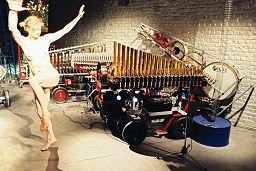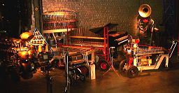 first group of some 10 robots: organs, bell-machines, a double string hurdy-gurdy,