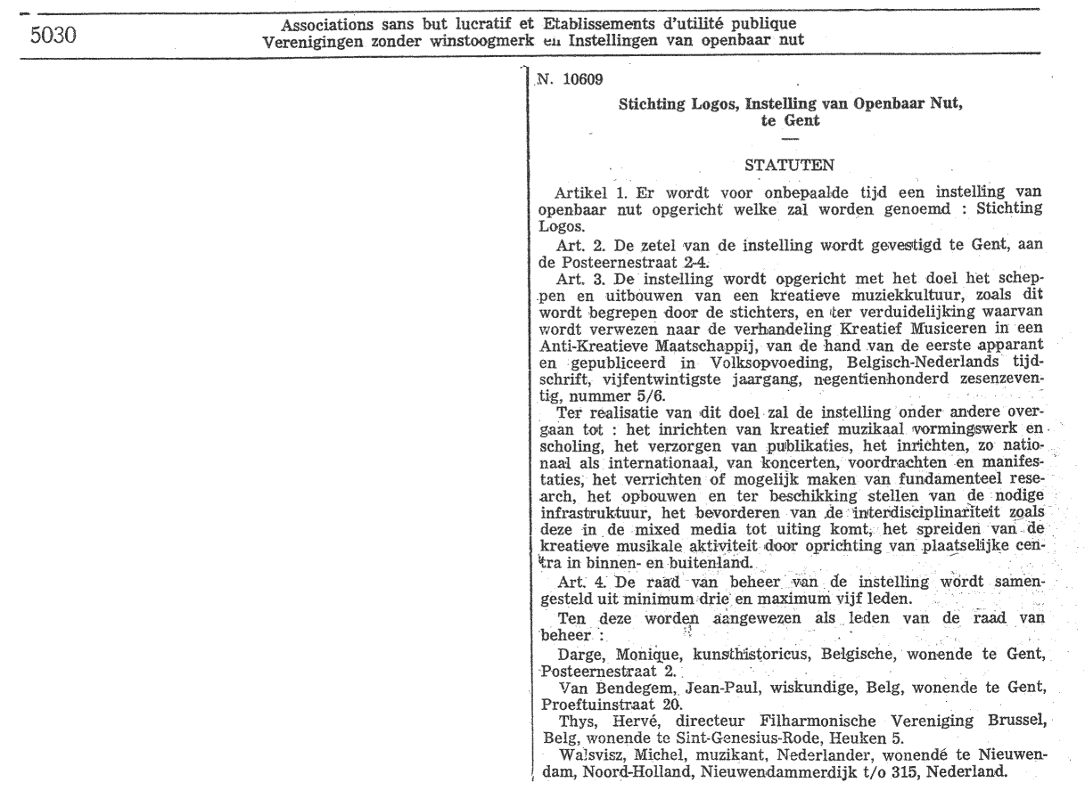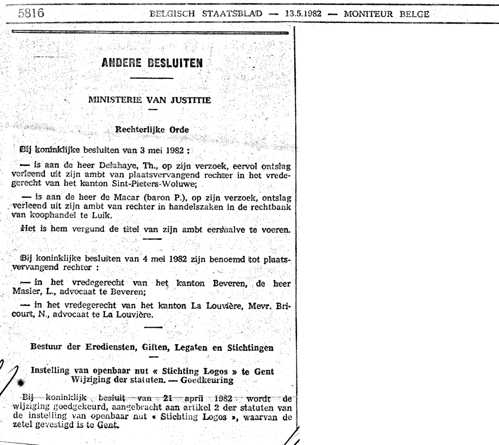 Publikatie van de statuten naar aanleiding van het KB waarbij de oprichting van Stichting Logos werd goedgekeurd:
