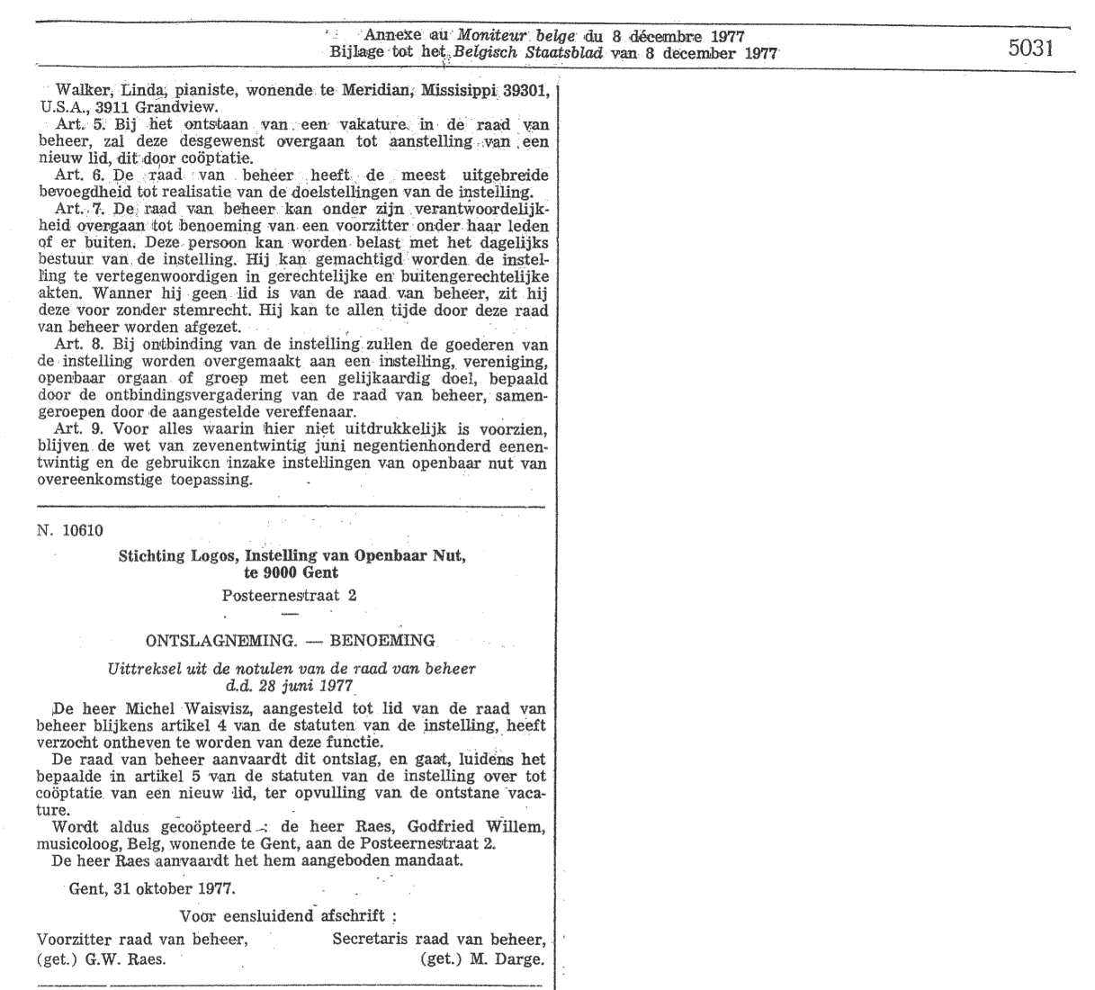 Belgisch Staatsblad 8 december 1977: