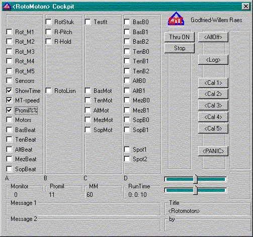 User interface components that are not used in a particular application, will not be displayed in the cockpit. The UpdateCockpit procedure handles this during finalization of the interface. For instance: if the user did not select both a midi-in and midi outport, the midi thru button will not appear in the cockpit.