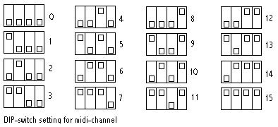 The midi channel used to transmit the data can be set with the dip switches on the ARM board: