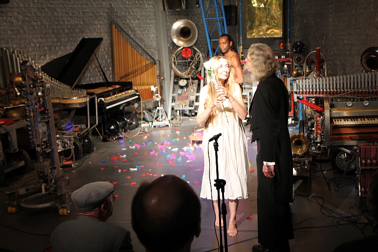 Performers in this M&M production: Emilie De Vlam (performance) , Dominica Eyckmans (dance , viola), Zam Martino Ebale (dance), Xavier Verhelst, Kristof Lauwers (composer), Moniek Darge (performance) , Sebastian Bradt (composer/performer), Godfried-Willem Raes (dancer, director, instrument builder and composer).