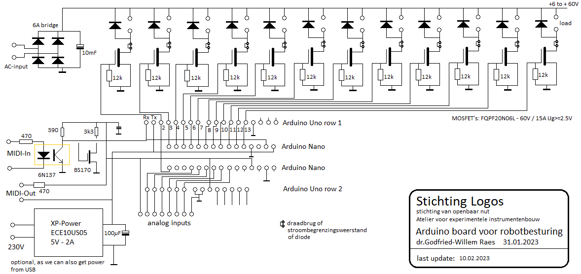 07.02.2023: We kunnen de 5V voeding op de print weglaten en gebruikers toelaten de logica voeding alleen te betrekken uit de USB poort. Een goedkope USB dummy voeding kan dan gebruikt worden om de seriele poort weer vrij te krijgen voor Midi I/O.