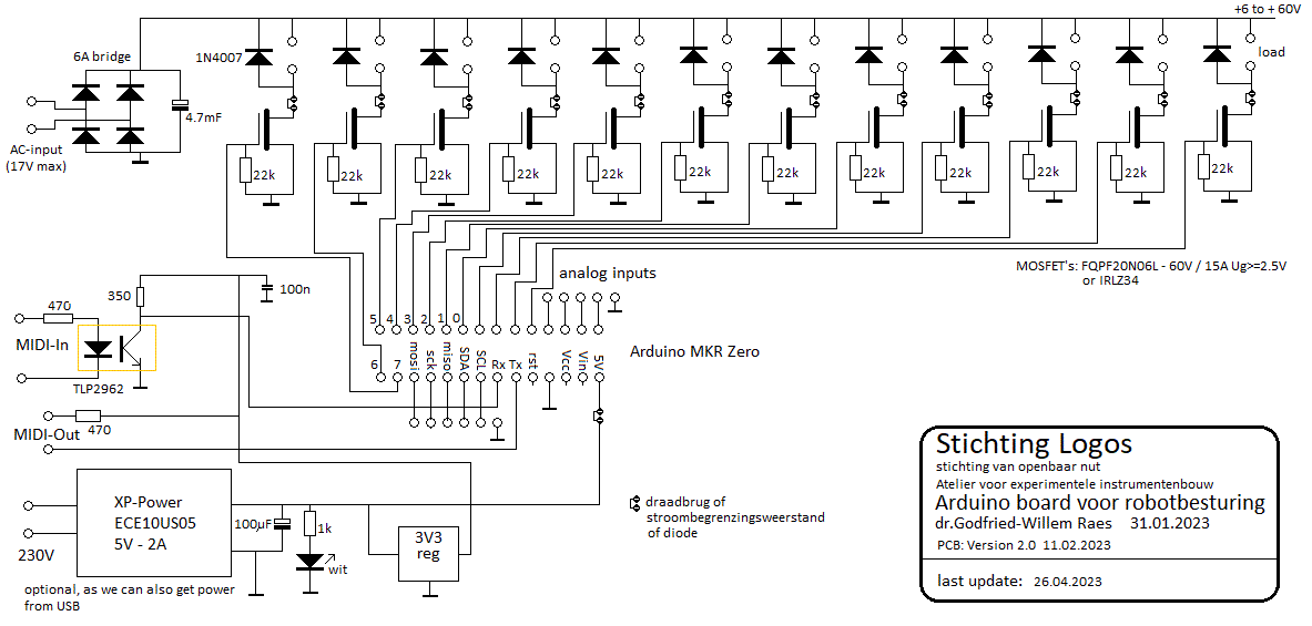 In april; 2023 bouwden we ook een board op voor gebruik met de Arduino MKR Zero. Het schema ziet eruit alsvolgt: