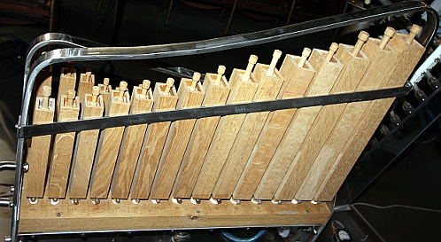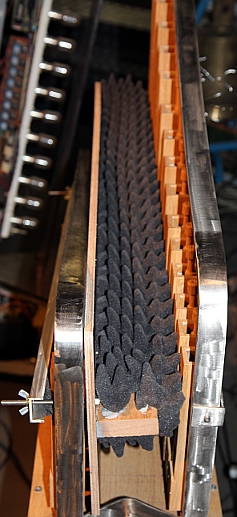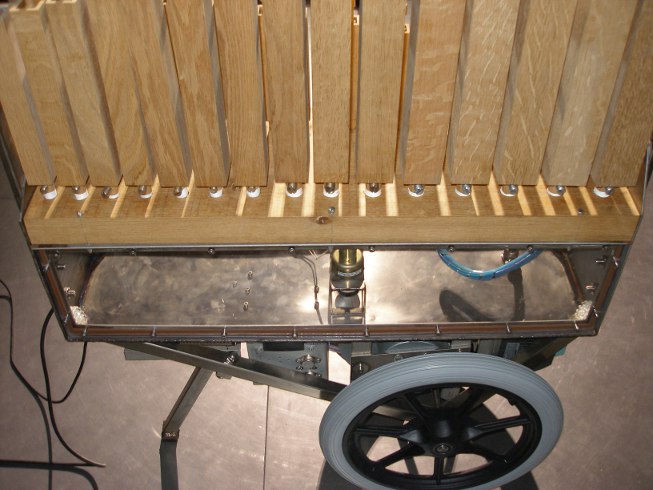 as a thermometer are mounted on the windchest. A tremulant, using a softshift