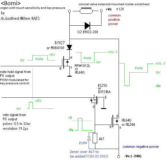 the windvalve/tremulant as well as of the motor commands and the PWM for the