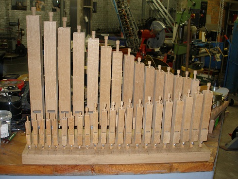 Light colored oak wood is used for the pipes. The wood is left in its natural