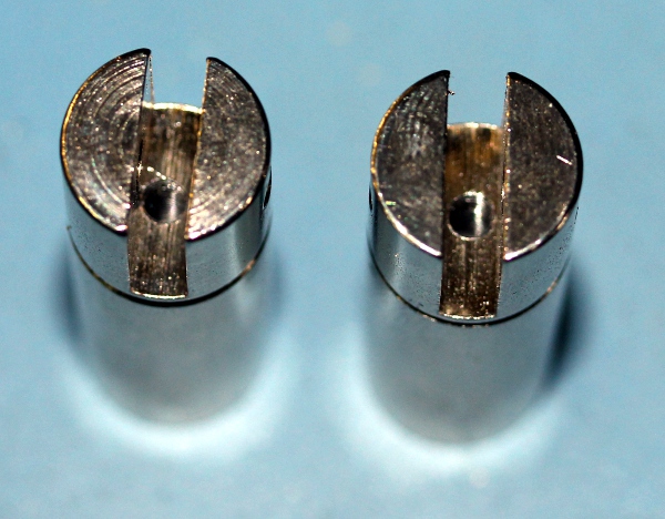 De dokjes zijn aan de onderkant voorzien van een messing staafje met schroefdraad