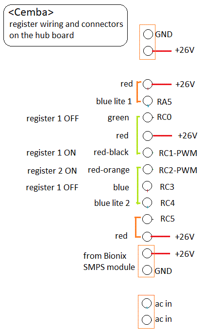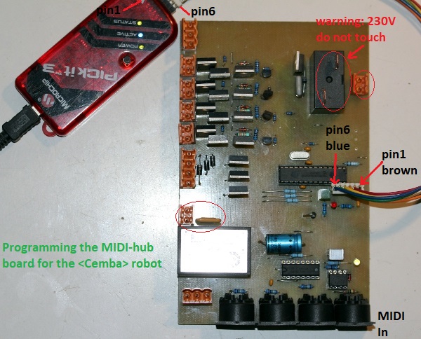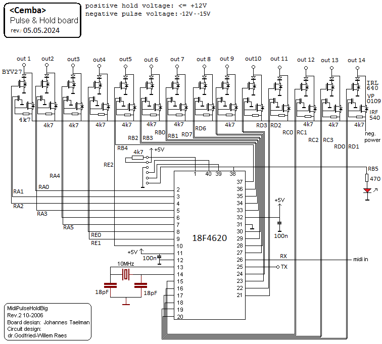 | Hub print: (5V power, mains relay, reg. control,midi I/O) |