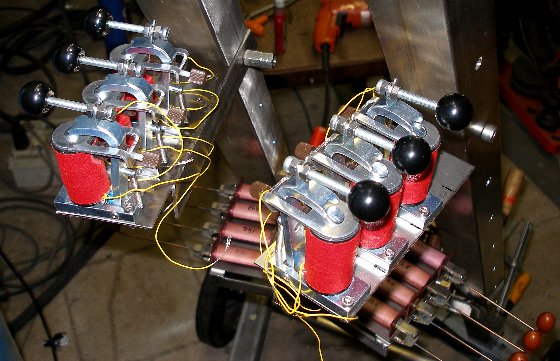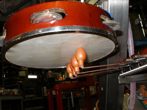 Two sets of three beaters operate in a vertical plane. These use a similar technology as well as the same type of solenoids, as we designed in earlier robots such as <Xy> or <Tubi>.