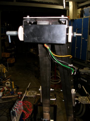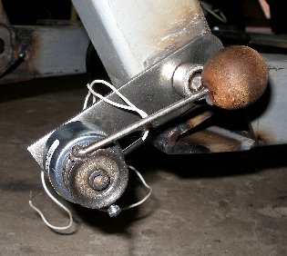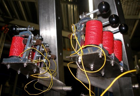 Voor het 'pedaal'-mechanisme vertrokken we van het tegenwoordig gangbare middels een ketting aangedreven tuig. Hiervan verwijderden we de treeplaat geheel en aktiveerden we het draaimechanisme rechtstreeks via een uiterst krachtige trekmagneet.