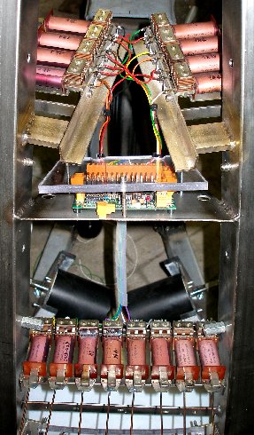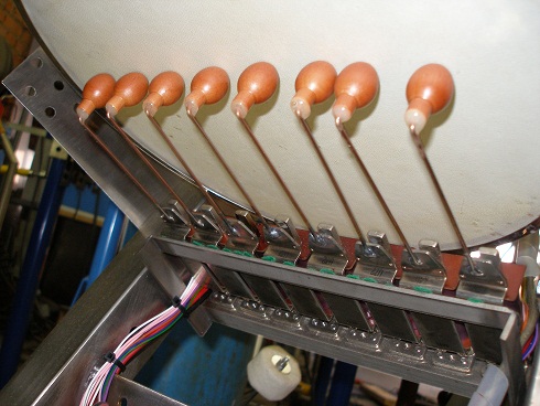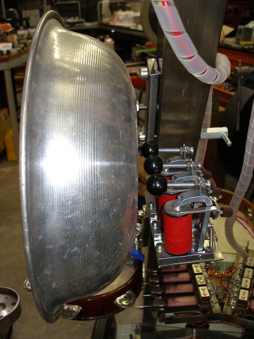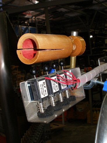 Sixteen beaters (two sets of four and one set of eight) make use of modified relay solenoids. These can operate pretty fast and are very suitable for rolls. The tips of these beaters are made of exotic wood.