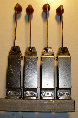 Rotary solenoids: Lucas Ledex (now Saaia Burgess) type H-2711-033. Axle 4.7mm, device diameter: 35mm. Rotation angle: 45 degrees. These solenoids are extremely expensive! (two pieces used) If they need replacement, it would be better to use type L-2711-033(CW) and L-2712-033 (CCW). DC resistance: 75,3 Ohms, nominal 100% duty cycle voltage: 26V, at 50% duty: 37V, at 25% duty, 53V, at 10% duty 83V and at 5% duty cycle 118V.