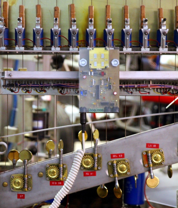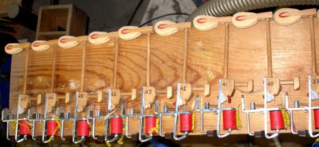 with twelve strings tuned from 36 to 47 and equipped with felt covered solenoid