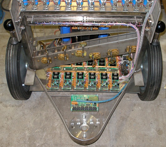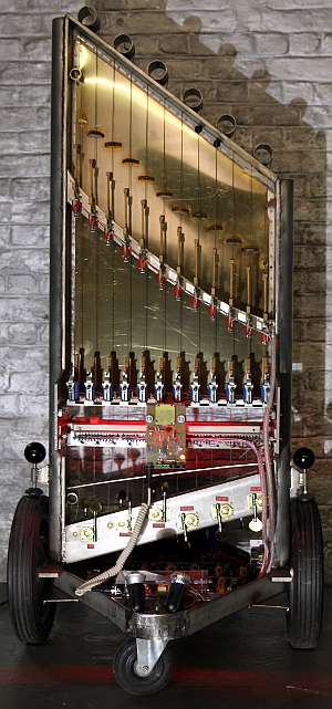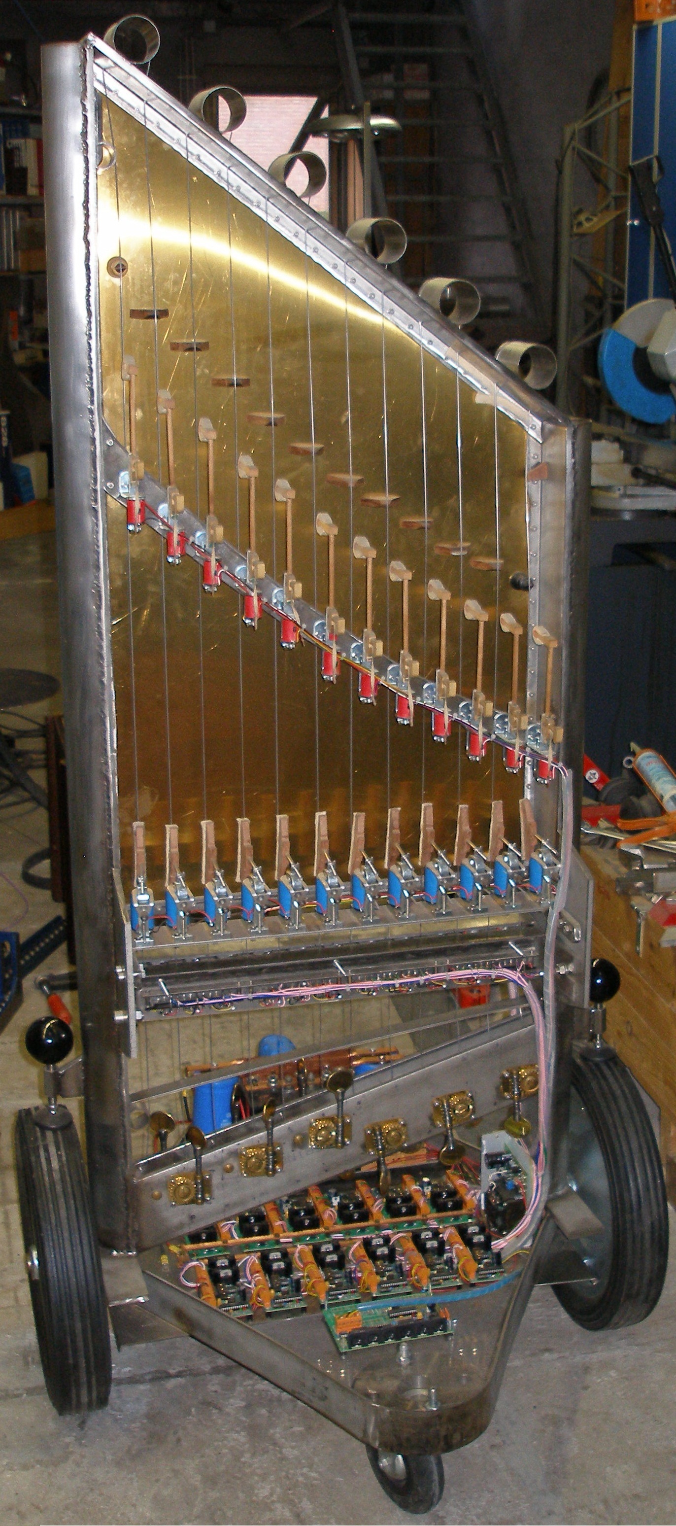 The instrument is mounted on a wheel base, as most of our music robots.