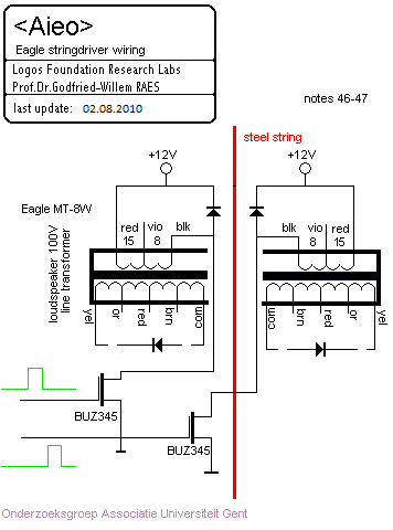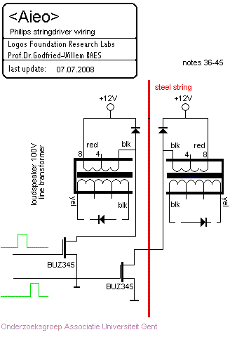 The strings are driven by the electromagnets in two phases. The signals and