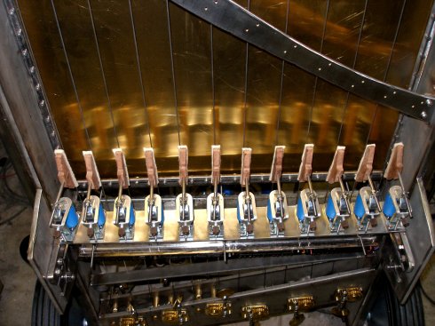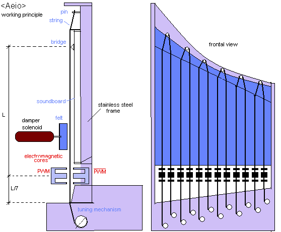 driven dampers. The soundboard could be made from either hardened brass, titanium
