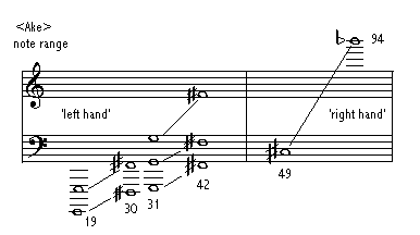 lower then real sounding, such as to avoid the overlap of notes 49 to 54 between