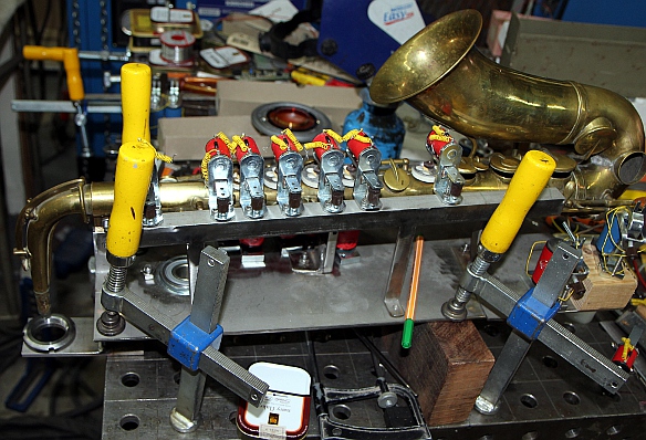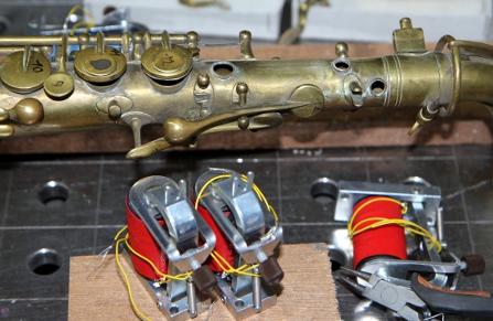 directly on the tone holes. Therefore we unsoldered the posts holding the mechanism