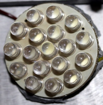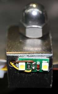 1 Round white LED assembly, 1W mounted on the backside, 12V. Mapped on note