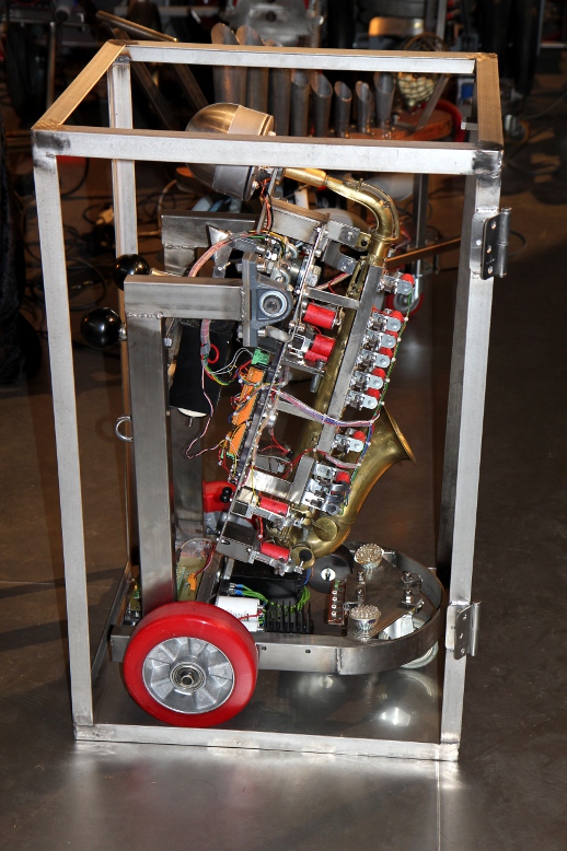 1 Yellow LED strip, 12V on the front, left of the saxophone carrier plate.