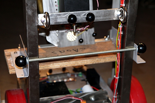 bakelite spherical knobs with internal M8 thread. Do not forget the thick washers