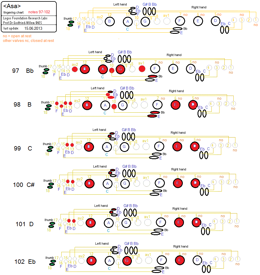 Fingering table for the extreme high notes 97-102 (Bb7 to Eb8 for saxophonists):