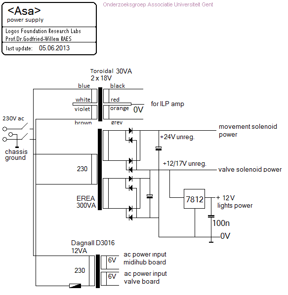 - + 5 V/ 500 mA for the three processor boards and the logic. (10VA transformer)
