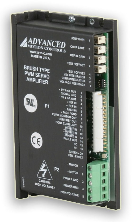 The motor control makes use of a brush DC servo amplifier module by Advanced