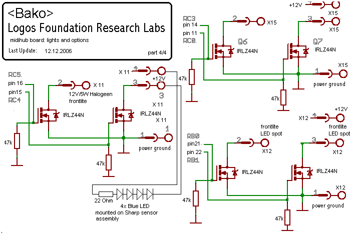 - Blue LED assembly under distance sensor (bottom): 4 ultra bright, 12 V/5