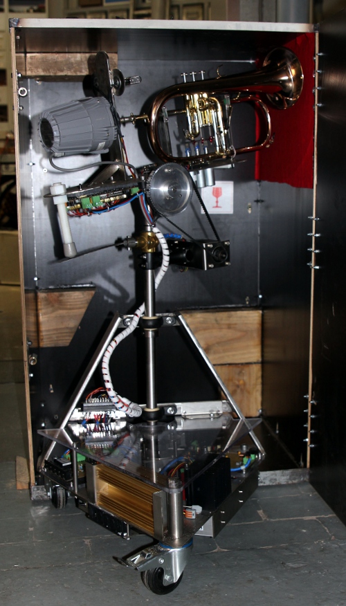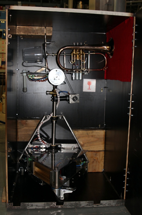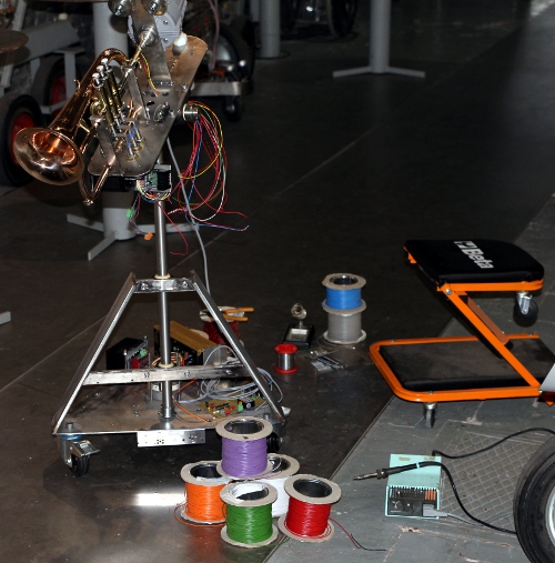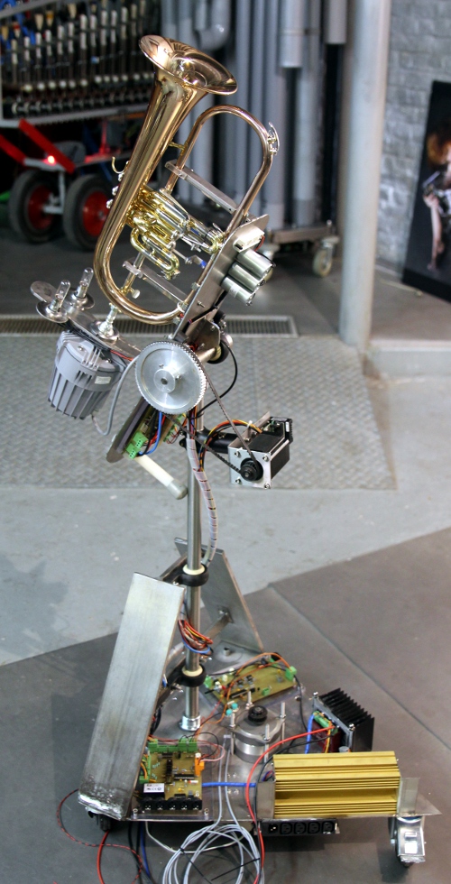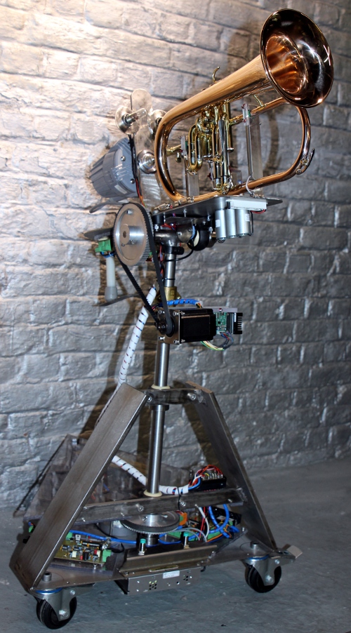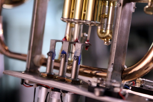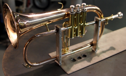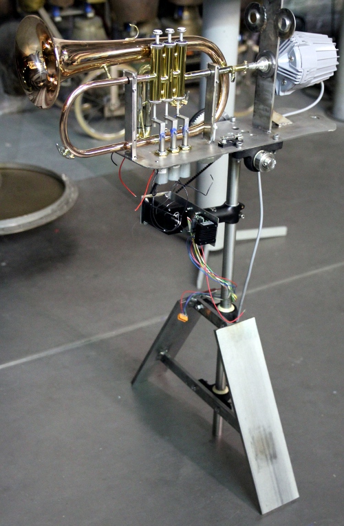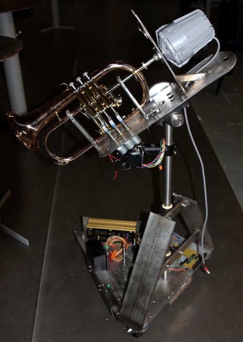 a French horn. This new robot, an automated flugelhorn, was designed and constructed